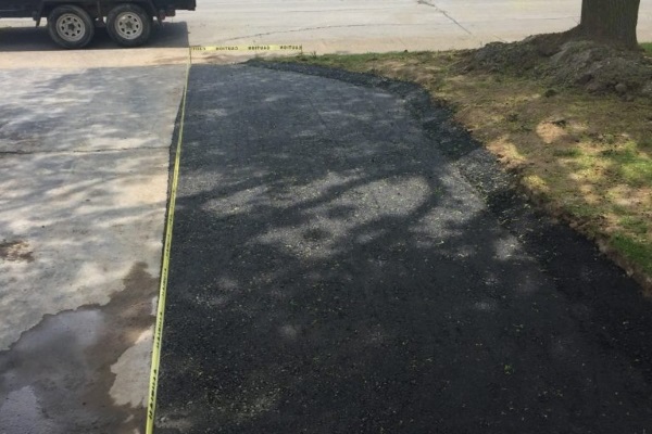 Add additional square footage or parking spaces to your current driveway. Excavate 10” of soil using the mini excavator. Install 6” of modified stone. Over the stone, install 2” of base course asphalt and compact. Over the base course, install 2” of finish course asphalt and compact. The new extension will be visible due to the deeper black color and the texture. If a uniform look is desired, an overlay of the entire driveway is needed.